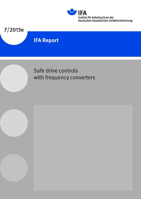 Safe drive controls with frequency converters. IFA Report 7/2013e. Ed.: Deutsche Gesetzliche Unfallversicherung (DGUV), Berlin 2014. ISBN: 978-3-86423-131-5
